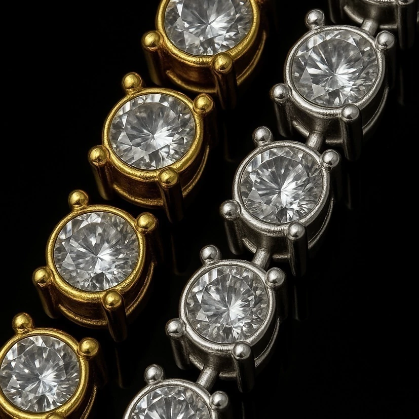 Nuestras piezas tienen un metal base denominado "aleación de zinc", que está recubierto con una capa de color oro o plata muy resistente. De todos modos, es recomendable tener ciertos recaudos para garantizar la mayor duración. Como por ejemplo: Evitar el contacto directo con perfumes o el agua para evitar que los brillantes se estropeen. 💎