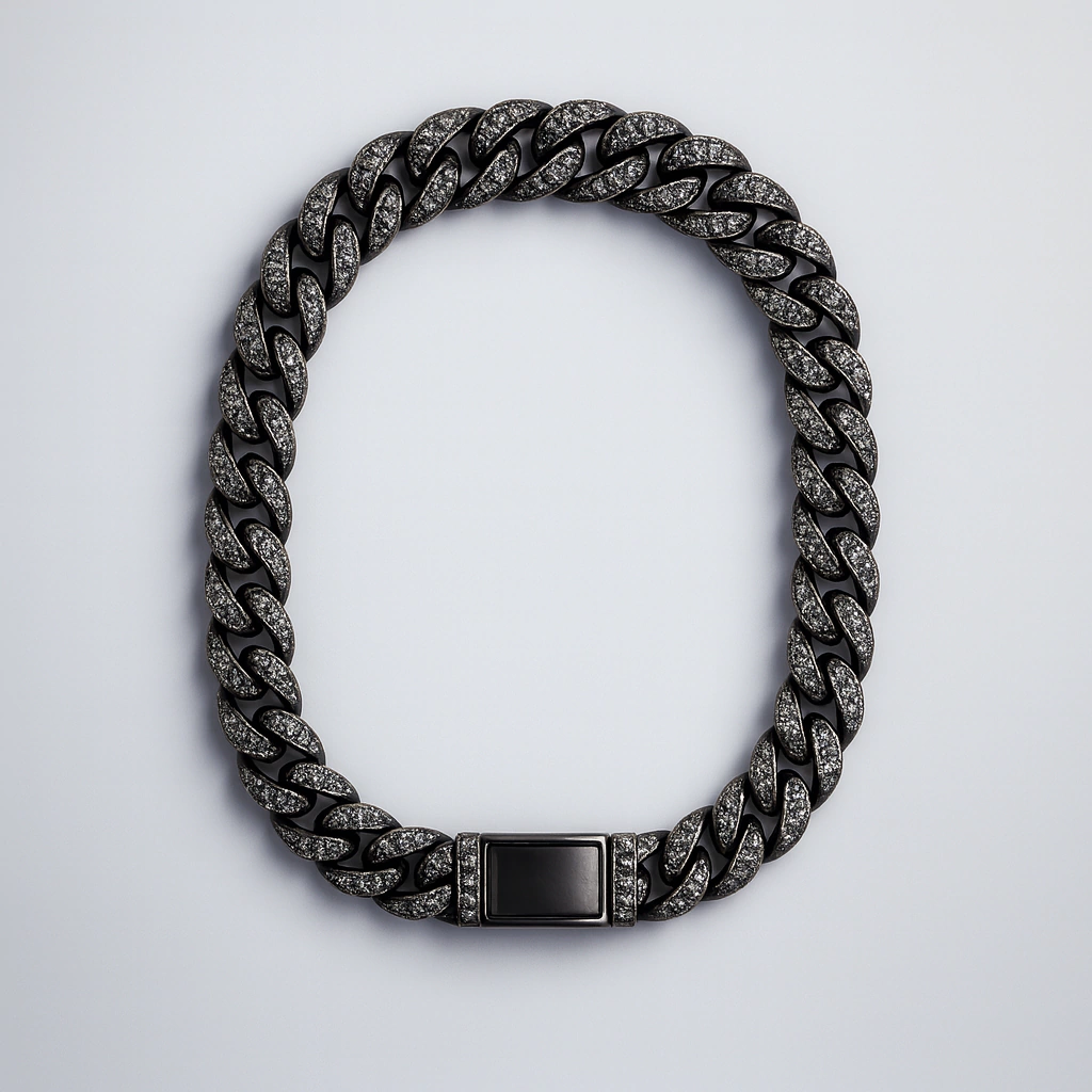 Elegí calidad, estilo y exclusividad con la Cadena Cubana Full Ice BLACK EDITION 2025. ¡Sumá brillo y personalidad a tu outfit hoy mismo!
