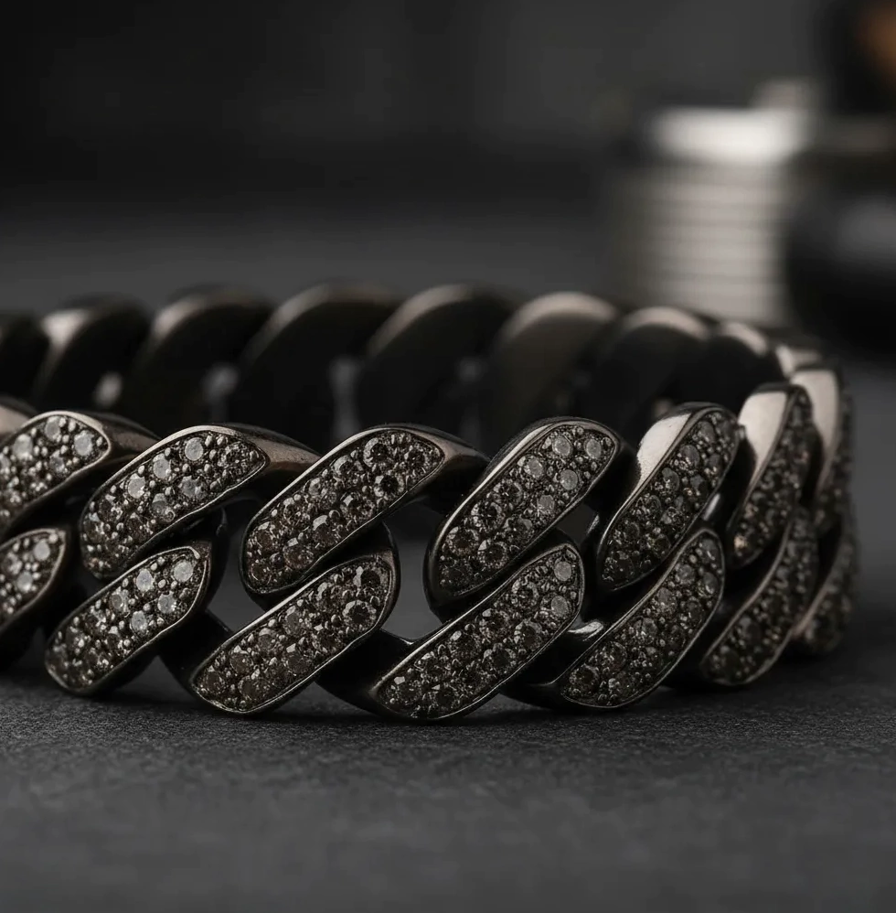 Elegí calidad, estilo y exclusividad con la Cadena Cubana Full Ice BLACK EDITION 2025. ¡Sumá brillo y personalidad a tu outfit hoy mismo!